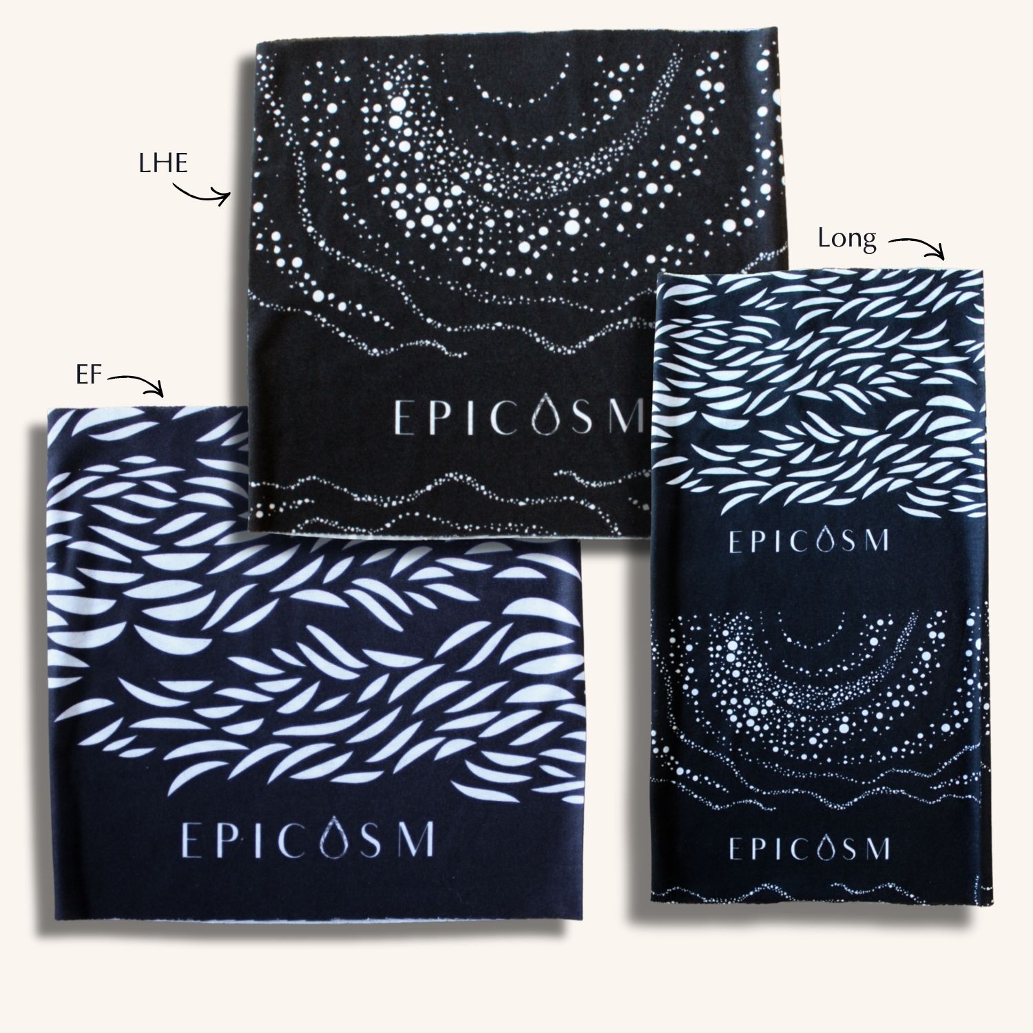 Fabriqué en polyester recyclé noir avec motif EPICOSM blanc, il maintient les cheveux efficacement pendant les soins, le démaquillage, le maquillage ou les massages, sans scratch ni système d’attache.